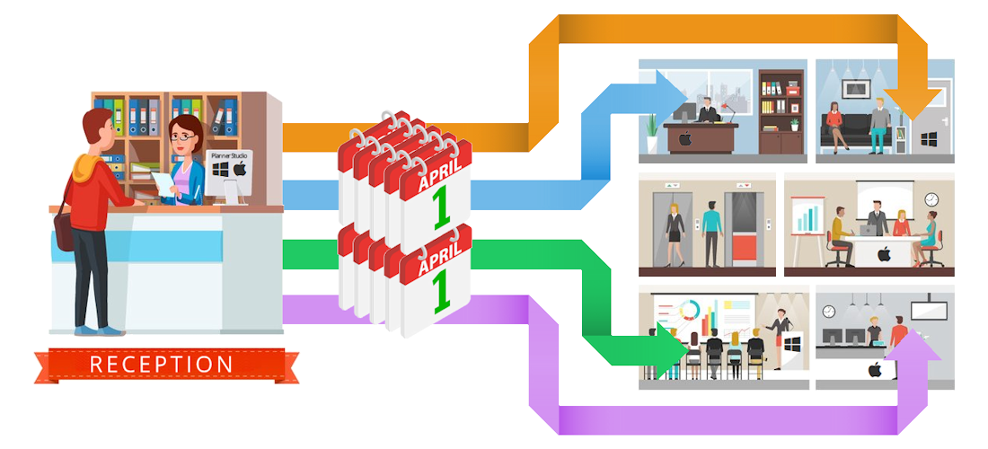 Planner Studio is a calendar management software for multi-user platform. You can connect more than Planner Studio workstations on the same database so you can share calendars.